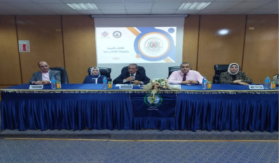 حيث قد تم الإتصال من معالي السيد أ.د/ وكيل كلية العلوم لشئون خدمة المجتمع وتنمية البيئة لترتيب موعد لزيارة الإدارة لمتابعة ملف الأزمات والكوارث وضمن أنشطة القطاع ووحدة الأزمات والكوارث بقيادة السيد أ.د/ شادى الدفراوي يوم الخميس الموافق 25/9/2025 للكلية بحضور أ/ عزة الخميسي مدير عام الإدارة الإستراتيجية ود/ محمد رياض مدير إدارة الأزمات والكوارث والحد من المخاطر بحضور أ.د/ شادي الدفراوي مدير وحدة الأزمات والكوارث بالكلية وفريق الأزمات والكوارث والحد من المخاطر بالكلية والسادة الزملاء من الإداريين بالكلية، وتم الإستقبال بمكتب السيد أ.د/ محمد أبو النور وكيل الكلية لشئون خدمة المجتمع وتنمية البيئة وتوجهنا لقاعة السيد أ.د/ أحمد أمين حمزة لإلقاء المحاضرة