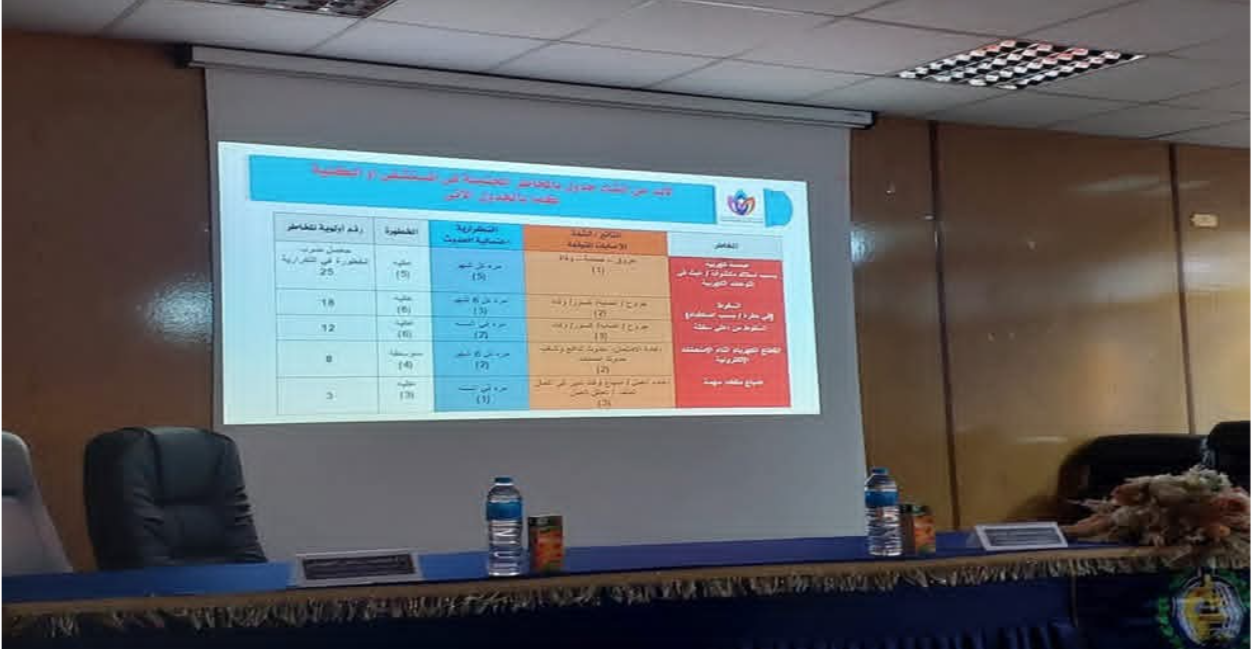 وإيماءًا إلى خطة إدارة الأزمات والكوارث والحد من المخاطر والقيام بمتابعة سير العمل بوحدات الأزمات والكوارث بالكليات وما تم إنجازه بملف المخاطر والتوجيه بضرورة استكمال كافة الملفات بالكلية.