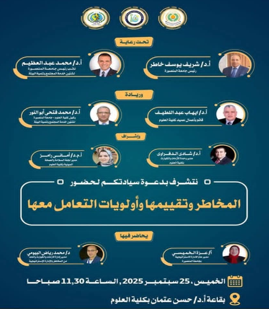 تحت رعاية معالي الوزير أ.د/ شريف يوسف خاطر- رئيس جامعة المنصورة، وريادة أ.د/ محمد عبد العظيم - نائب رئيس الجامعة لشئون خدمة المجتمع وتنمية البيئة بالتعاون مع الإدارة العامة للإدارة الاستراتيجية بجامعة المنصورة.